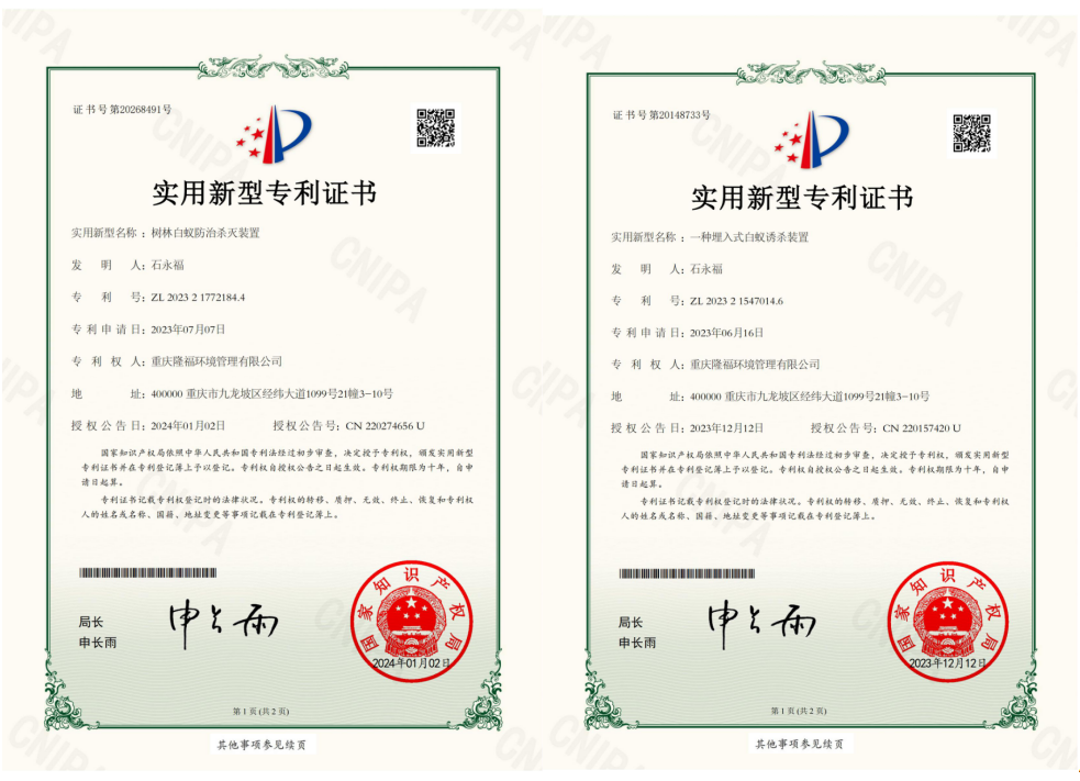 白蟻監(jiān)測控制裝置防治白蟻的原理是將白蟻喜食且對白蟻具有極強引誘力的木塊固定在監(jiān)測控制裝置內(nèi),然后將監(jiān)測控制裝置按一定的要求安裝在需保護的房屋、樹木周圍或堤壩內(nèi)、外坡及坡頂土壤中,外出覓食的工蟻到達監(jiān)測控制裝置周圍一定距離處的土壤中后,由于受裝置內(nèi)木塊釋放在土壤中的引誘物質(zhì)的強烈吸引,迅速將蟻路修筑至監(jiān)測控制裝置,并紛紛進入裝置內(nèi)取食。